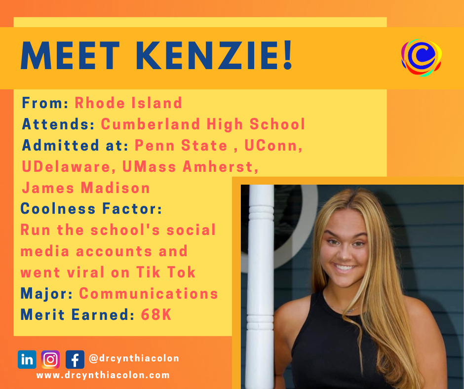 “Through Dr. Colón’s incredible knowledge, passionate energy, and effective resources, my overbearing college admissions transformed into an enjoyable storytelling process. As a high schooler, it was difficult to write about my inner passions in a way that answered the essay prompts. But through Essay Bootcamp, I was able to write honest stories that made me so proud of the person I have become. Dr. Colón is one-of-a-kind. Her rare and gifted talent to help students find their own success is unmatched. I am so grateful to have chosen Dr. Colón as my college counselor and life adviser."