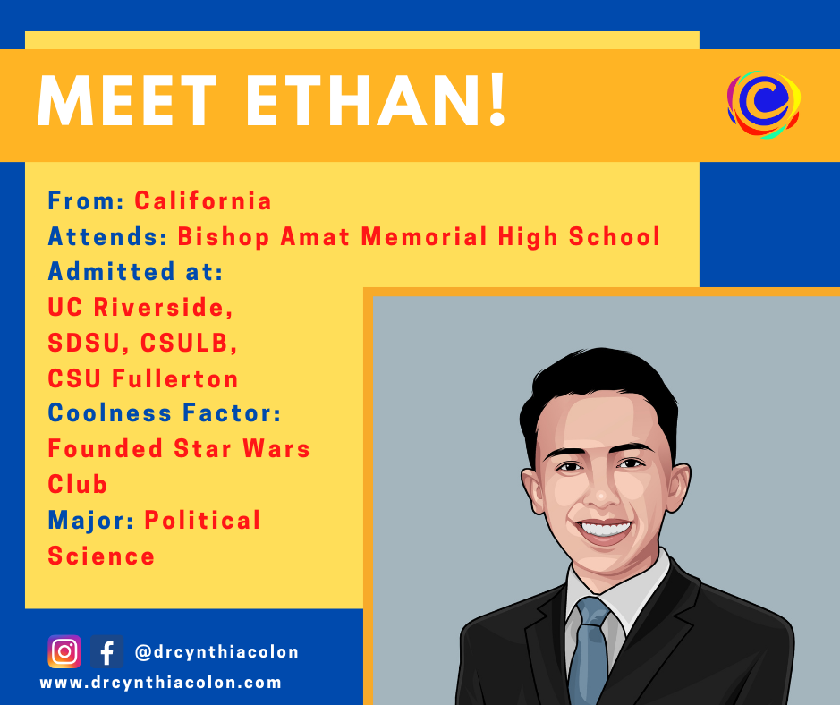 Today we meet Ethan, an aspiring politician and public servant committed to serving his community. He plans to stay in California, so applied broadly across the UC ad Cal State system.